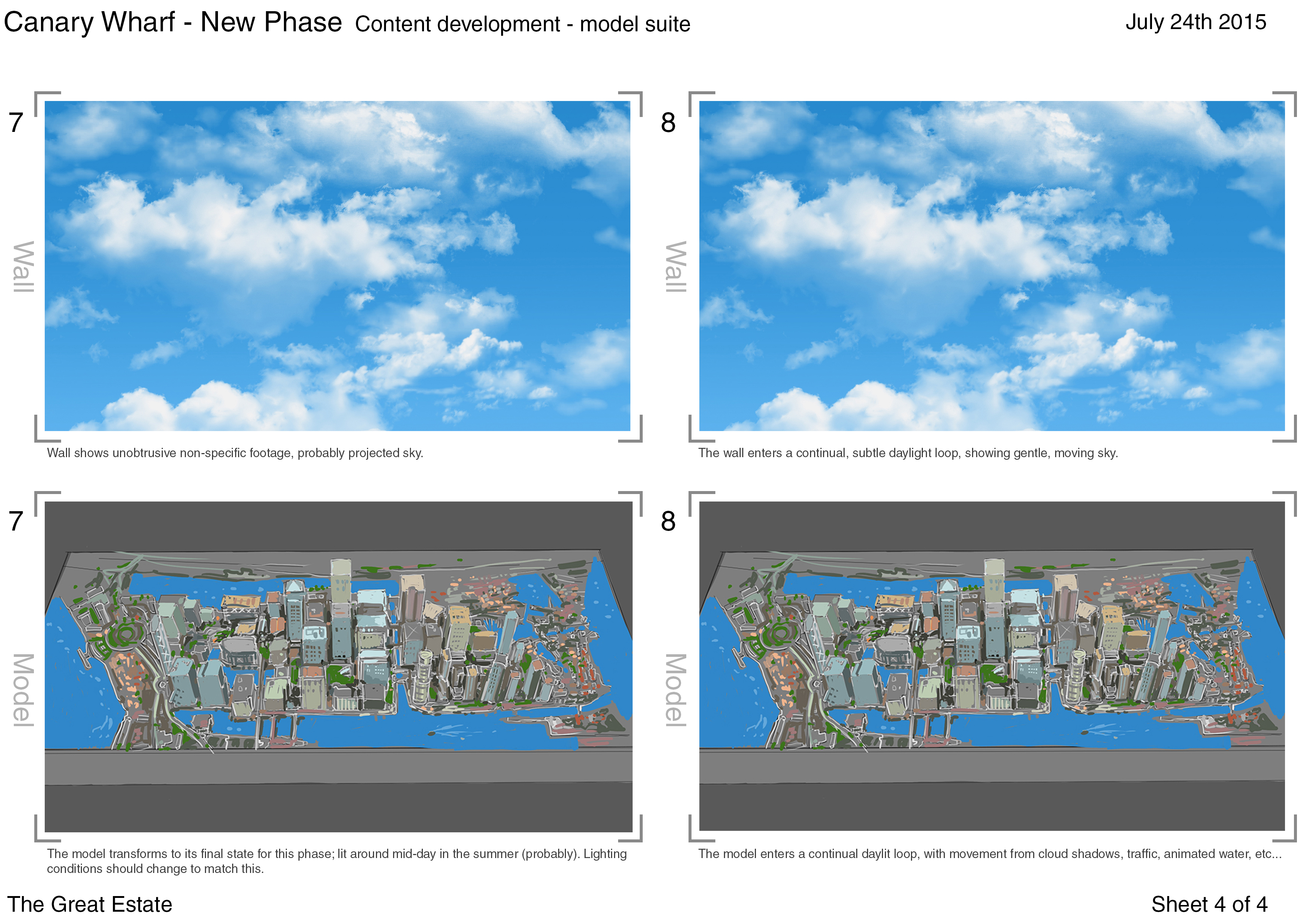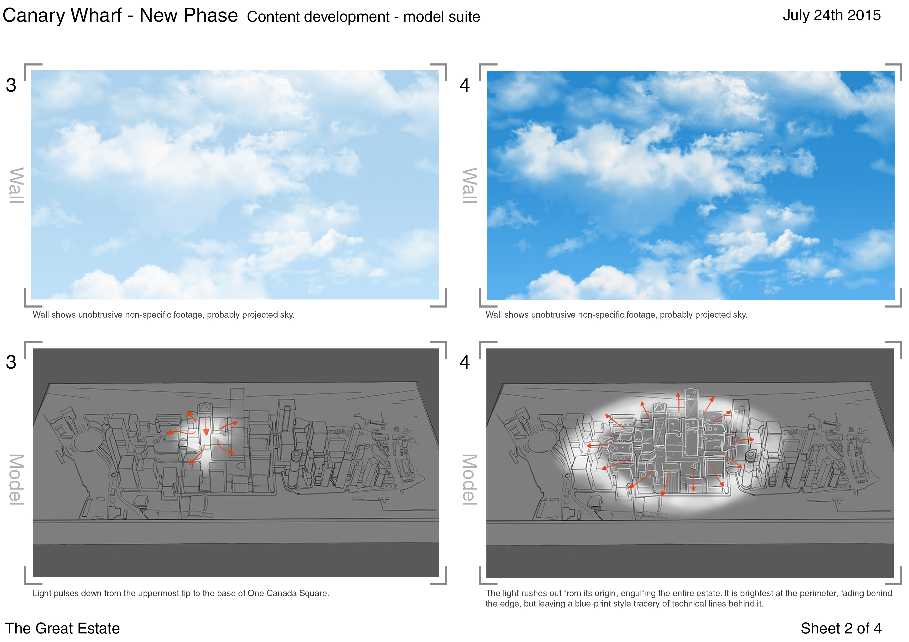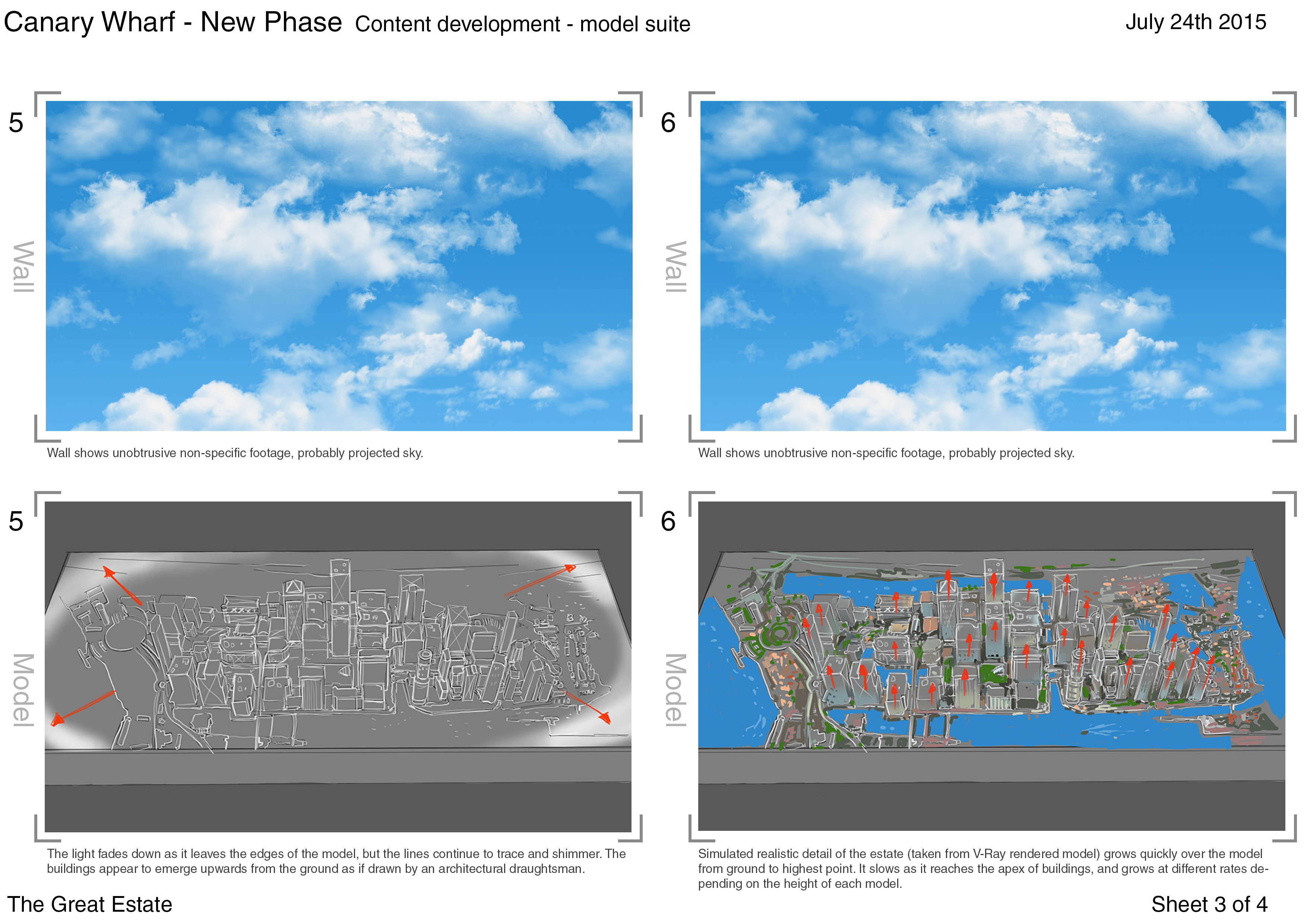 My first major project for Seeper was a hugely ambitious project involving projection-mapping and accurately scaled model of London’s Canary Wharf Estate. It was part of the sales suite on the 31st floor of One Canada Square and uses more than forty projectors to cover a model of the area that sits over fifteen square meters. Controlled by a tablet, the sales person can trigger one of a series of animated, projection-mapped sequences to help show the features of the area to prospective flat-purchasers.