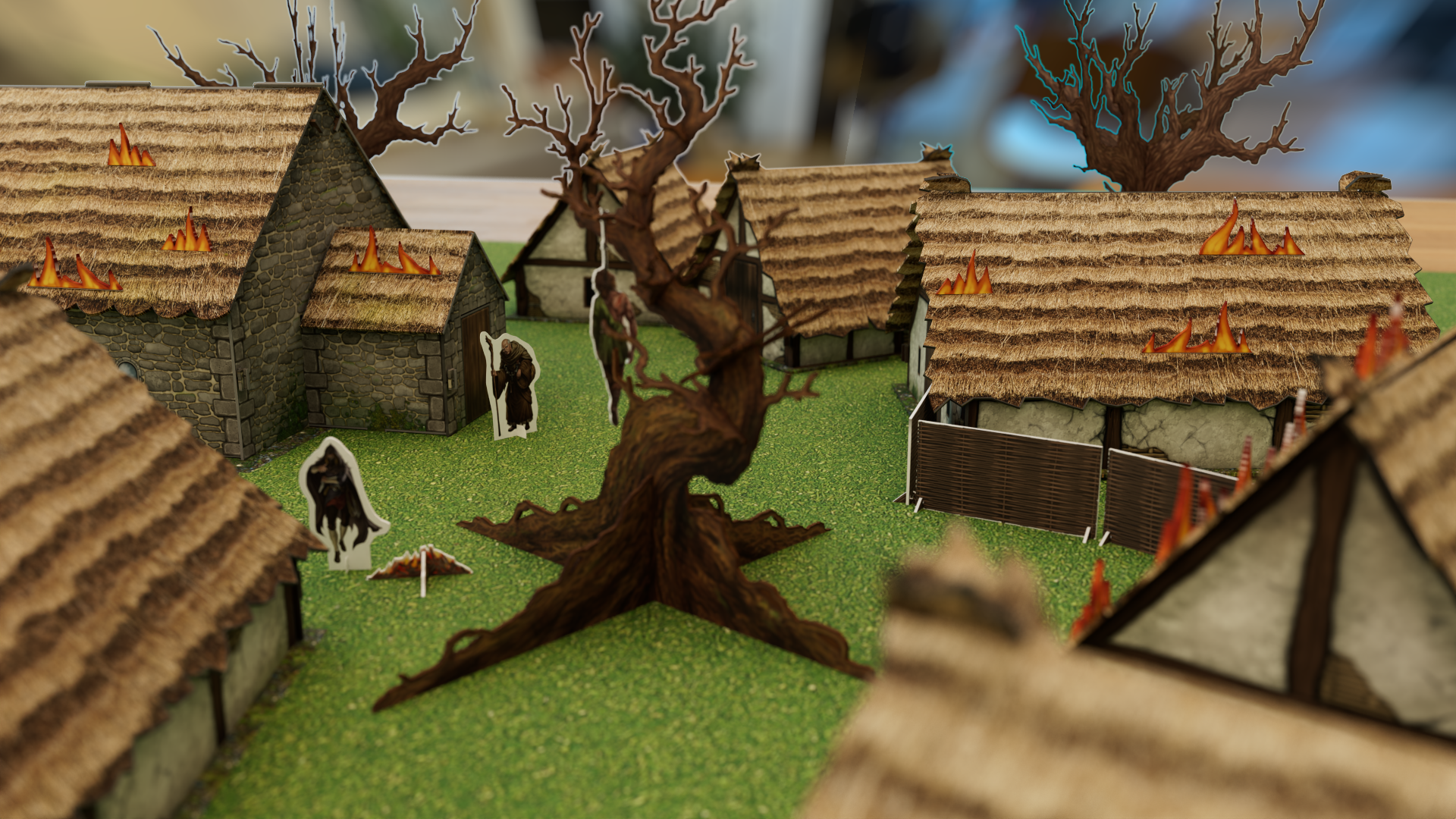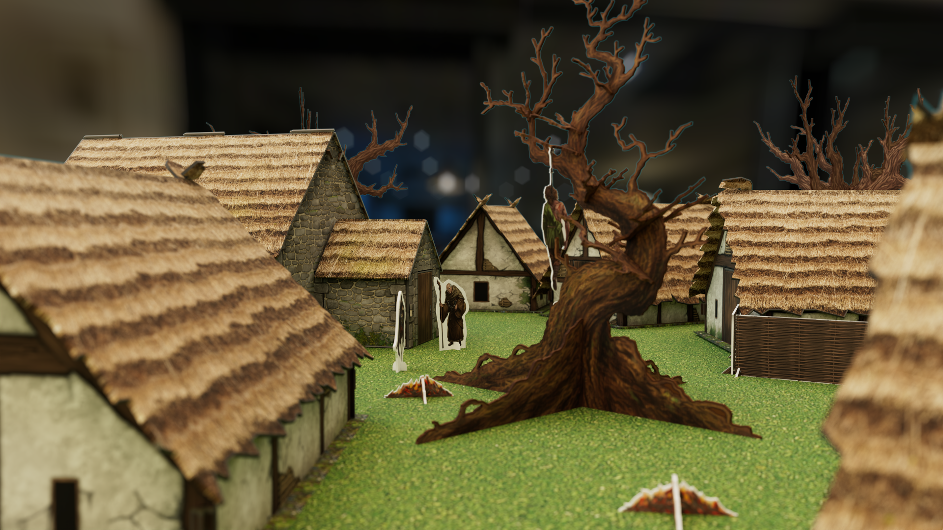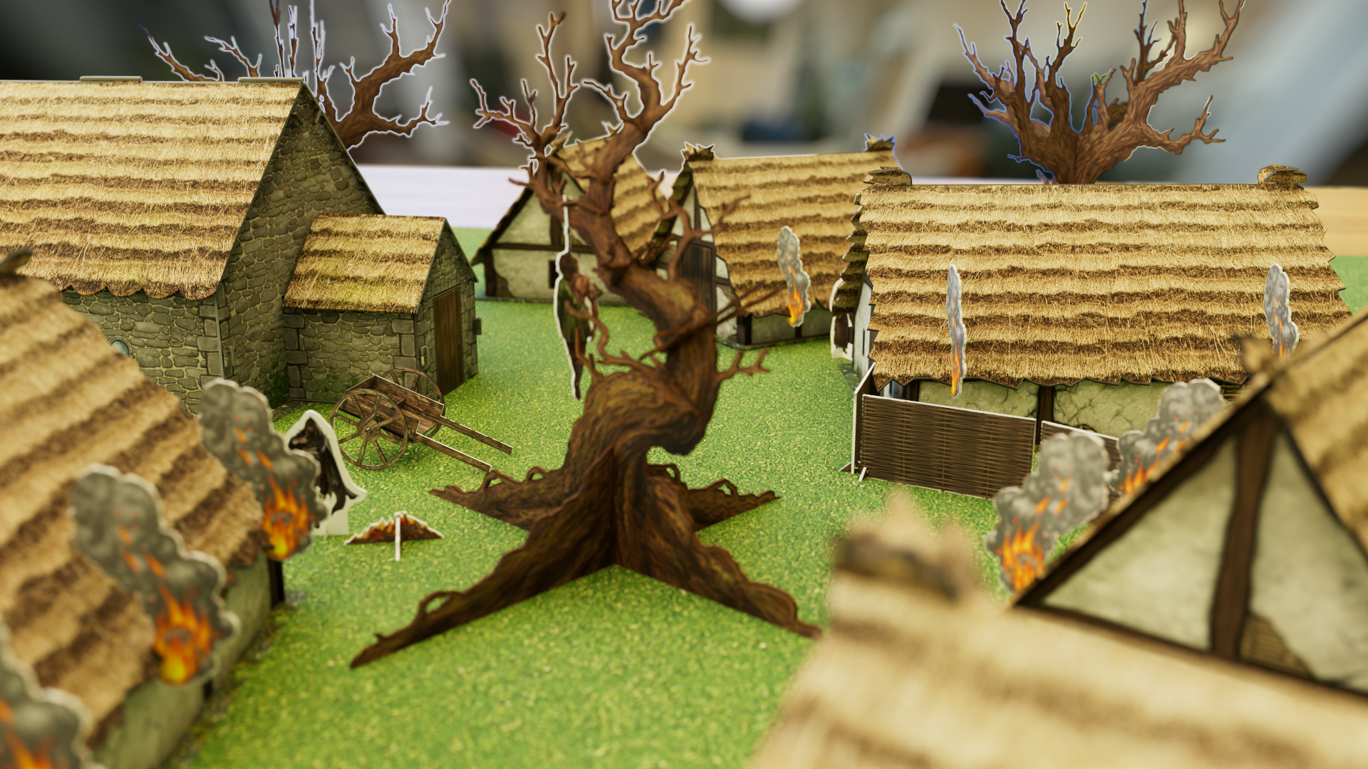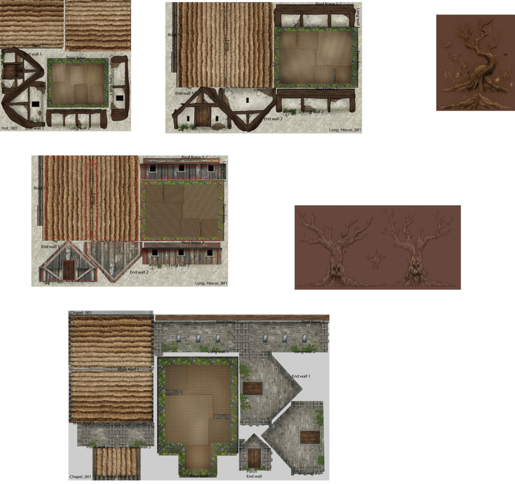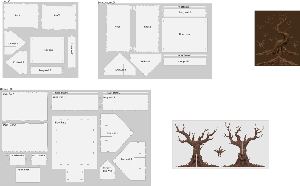 The team already had a design in mind, which I helped finesse in Adobe Illustrator, and then designed some new pieces including trees, carts and corpses.