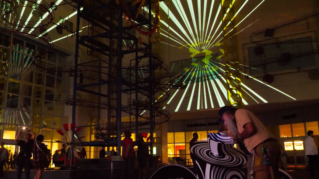 Seeper provided two pieces for the Ignite 2023 Festival in Florida. One was a large-scale mapping piece on the interior of the entrance to the Museum of Discovery and Science , and another interactive piece at the headquarters of MAD Arts, Dania Beach.