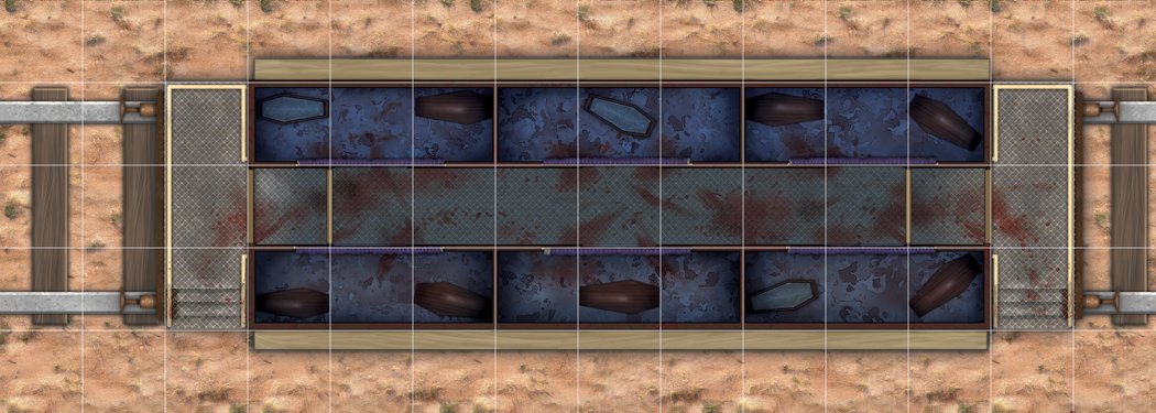 First five are battle maps for train/ box-car punch-outs for Deadlands, the final three remade in more grisly form for the Night Train supplement.