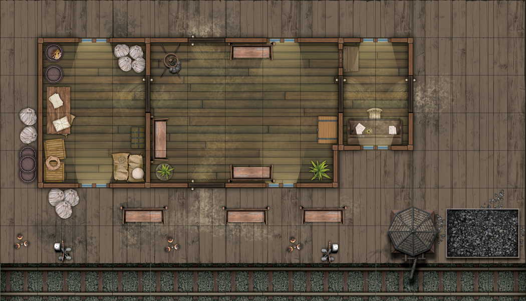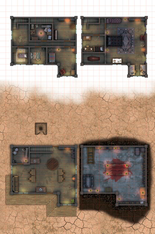 A substantial number of floor-plans of various town-based buildings for Deadlands RPG
