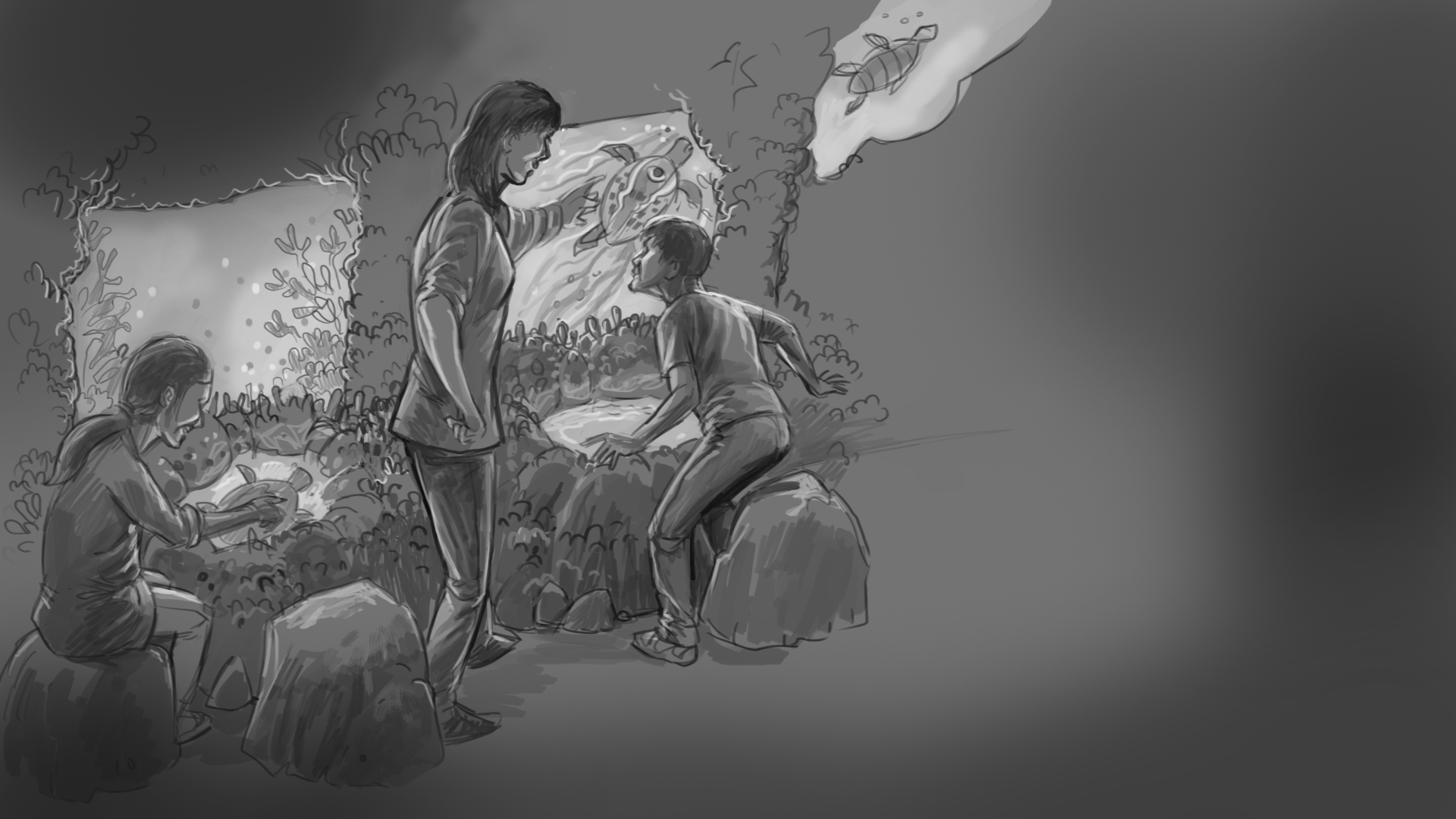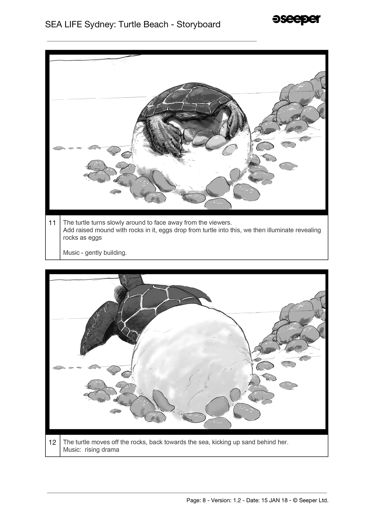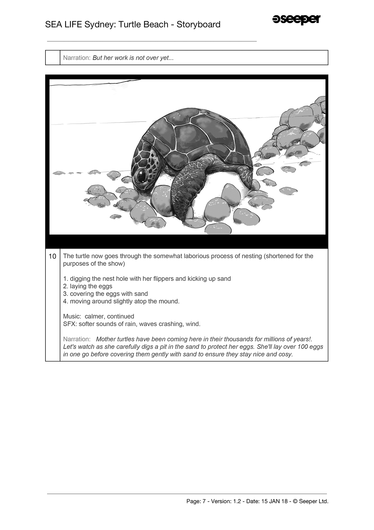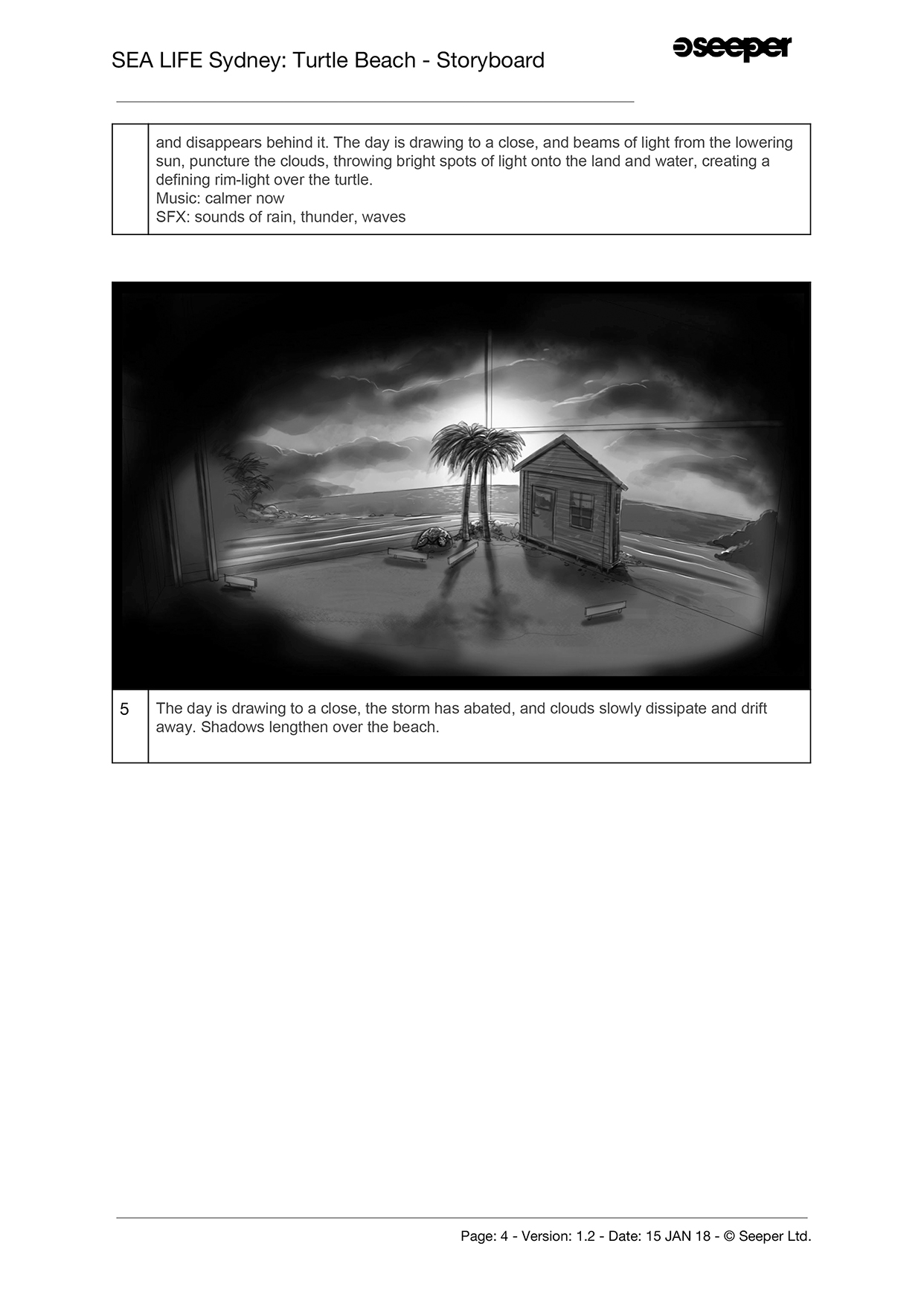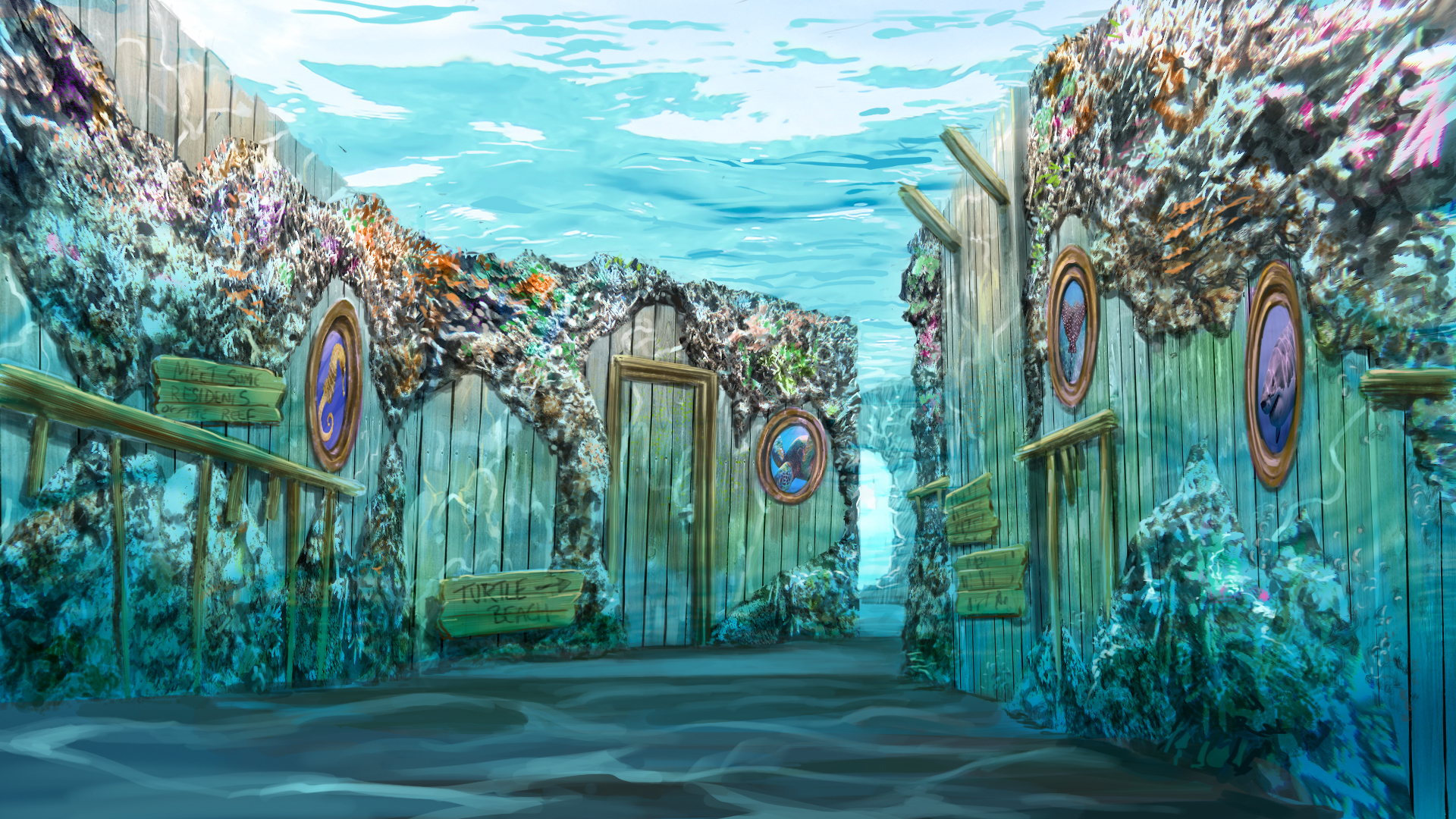 Our work on this project came in two stages; firstly the director, Evan Grant, and myself designed and plotted the entire experience for Day and Night on the Reef, and then created to attraction’s themebook.