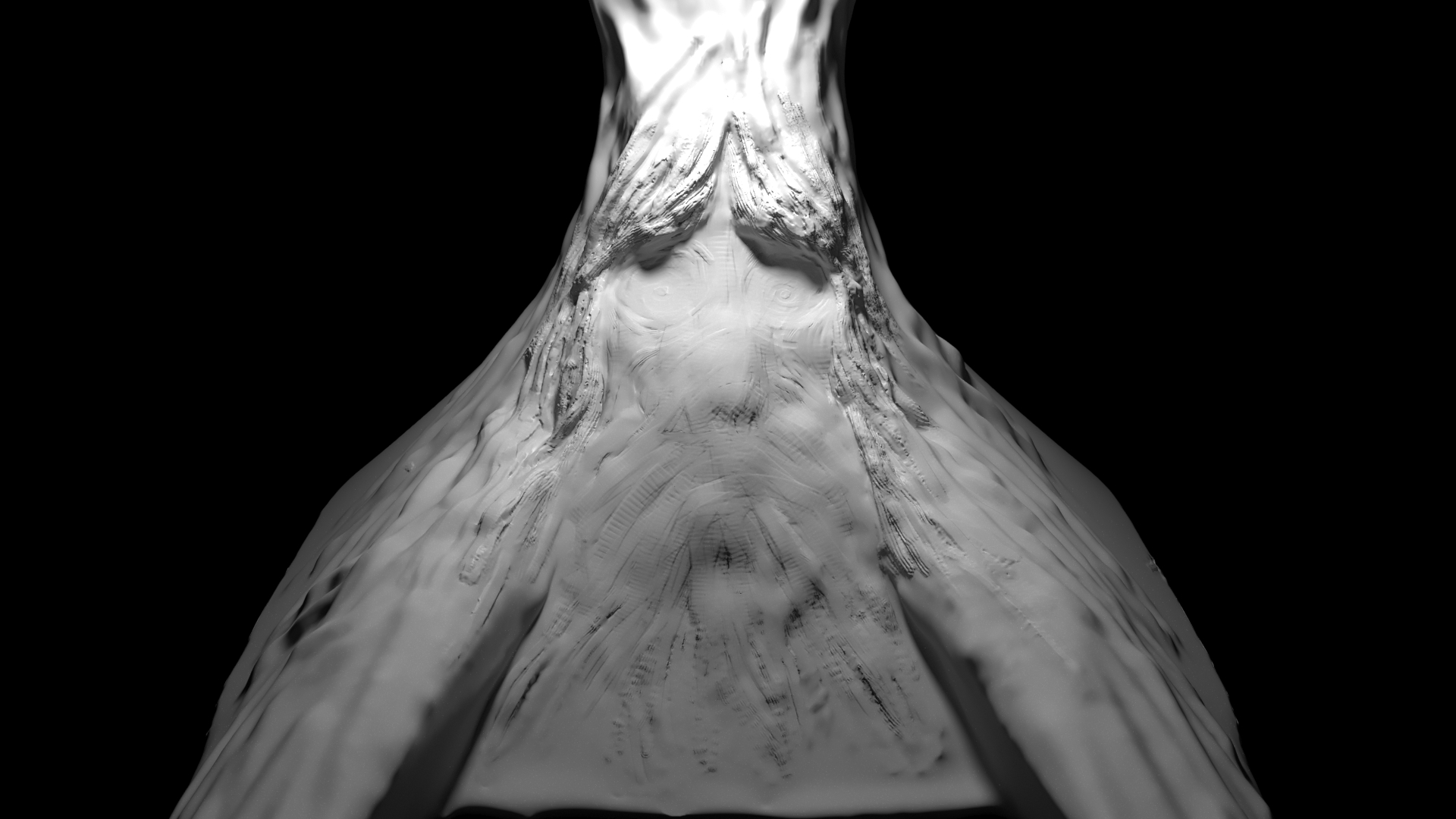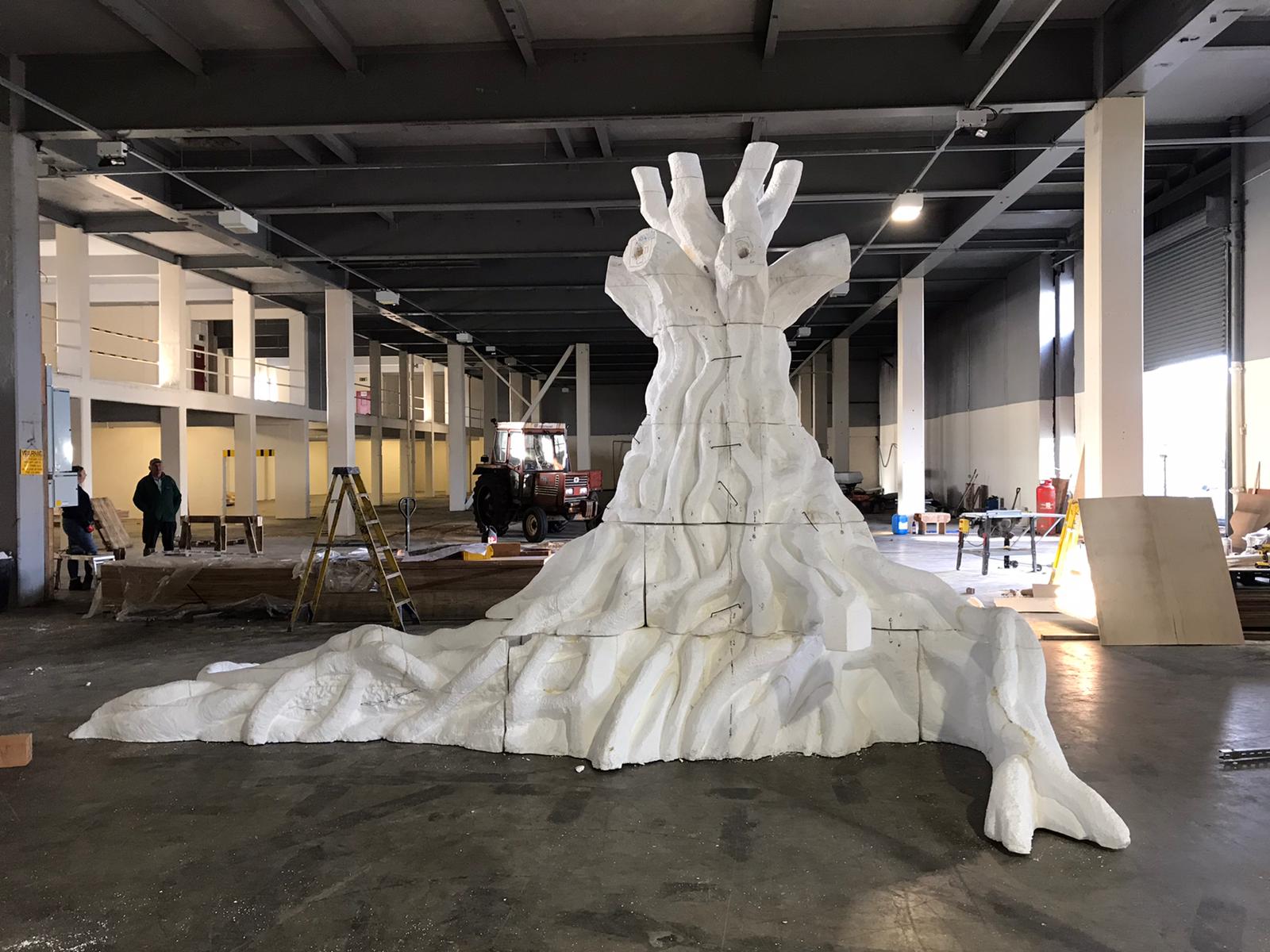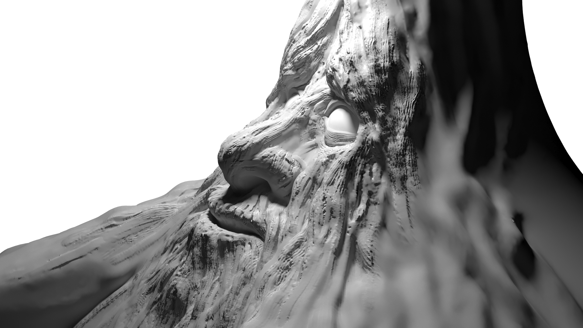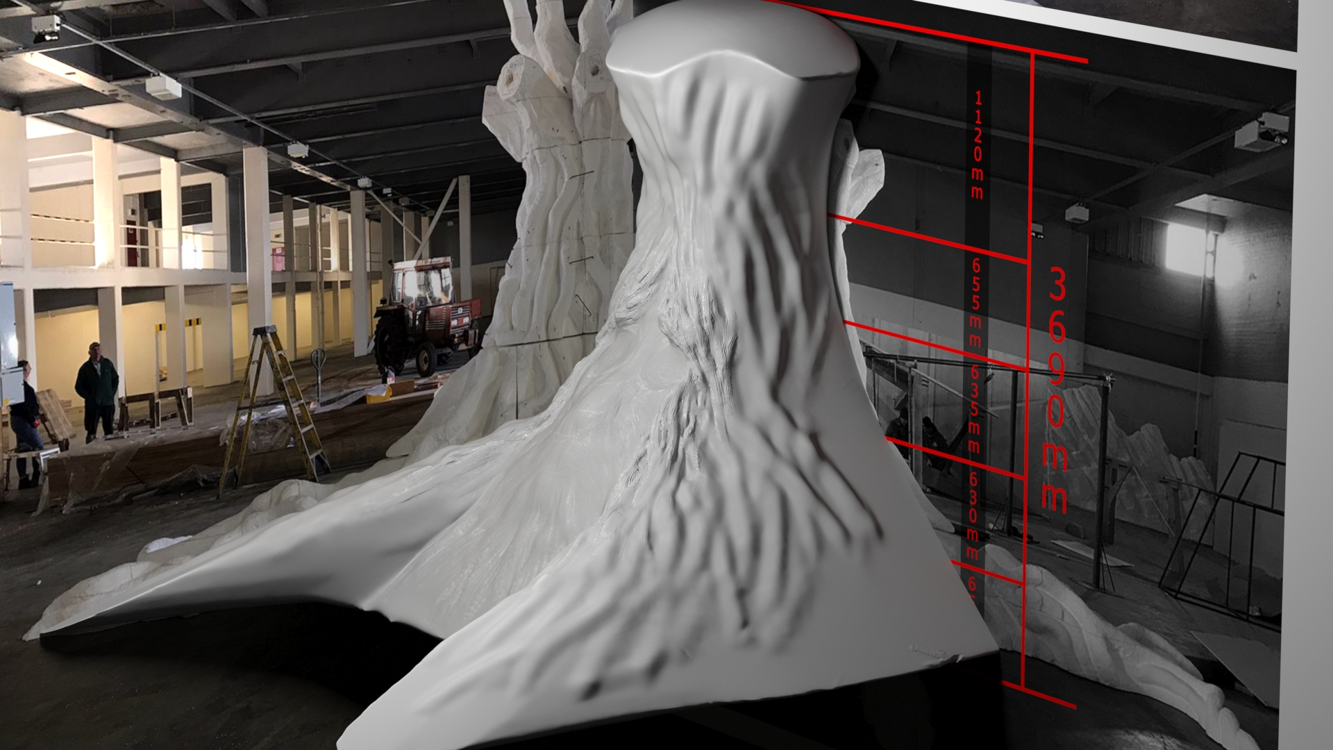 The tree itself was captured and digitised, and used to create a base model and face sculpt. The face was to “grow” out of the base tree, but needed an appropriate space for the projecte image to sit on. That model was sent back to the sceen builders to ensure the physical model could be modified to work with the content.